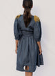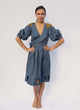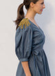 The Mainsail dress is from our Saffron Seas collection. A 100% linen wrap dress which features circle cut-out details on the hem and fringed, removable epaulettes.