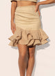 The Starboard skirt is from our Saffron Seas collection. This 100% linen rushed asymmetrical skirt features double ruffles with roped hem detail.