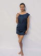 The Wee Sailor dress is from our Saffron Seas collection. This silk satin mini shift dress features a triangle cut out in the back.